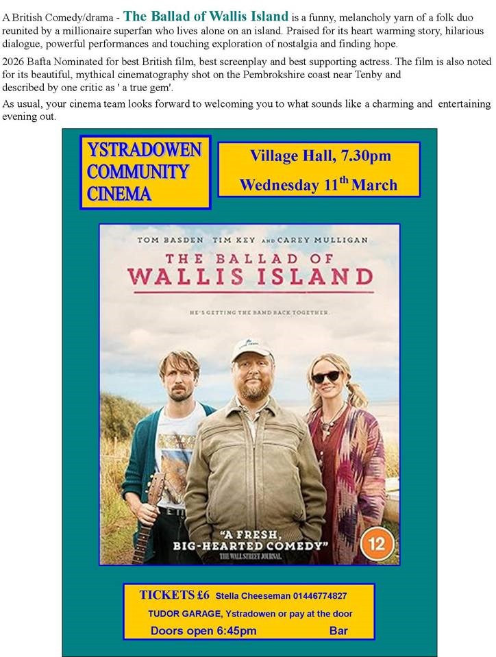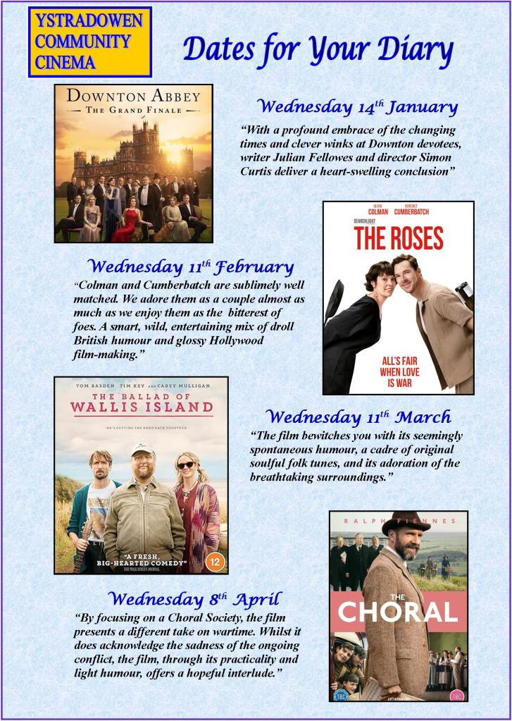 Community Cinema Dates for your Diary 2026 Share this: Share on Facebook (Opens in new window) Facebook Share on X (Opens in new window) X Email a link to a friend (Opens in new window) Email Print (Opens in new window) Print Like Loading...