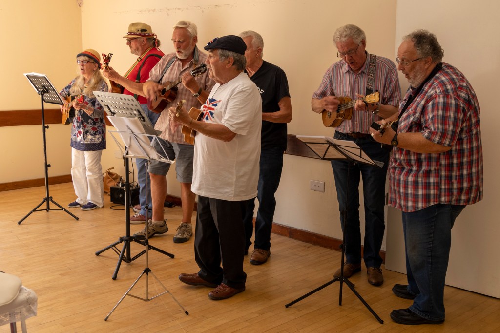 The Penybont UKulele Ensemble who played and sang familiar songs, encouraged audience participation.